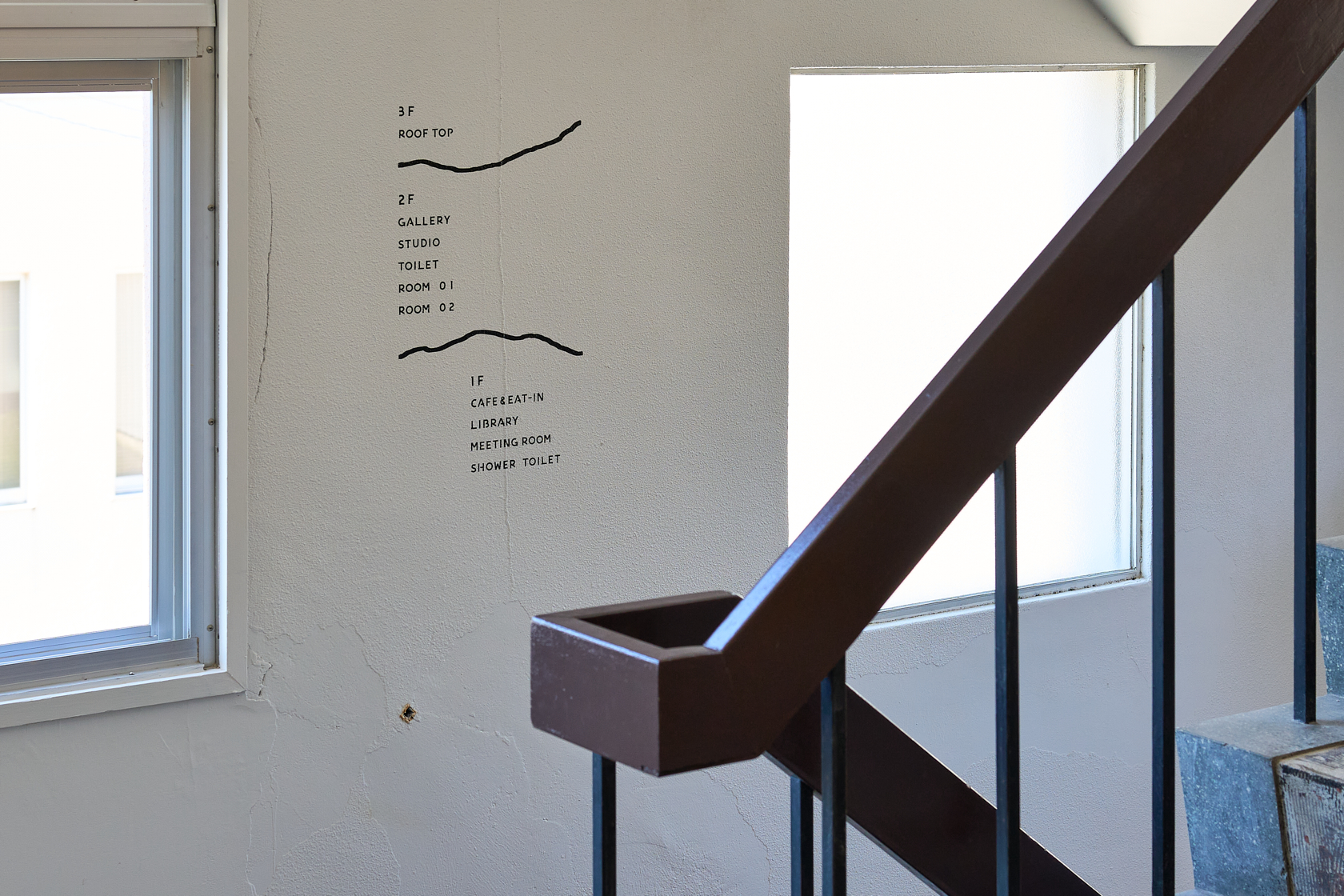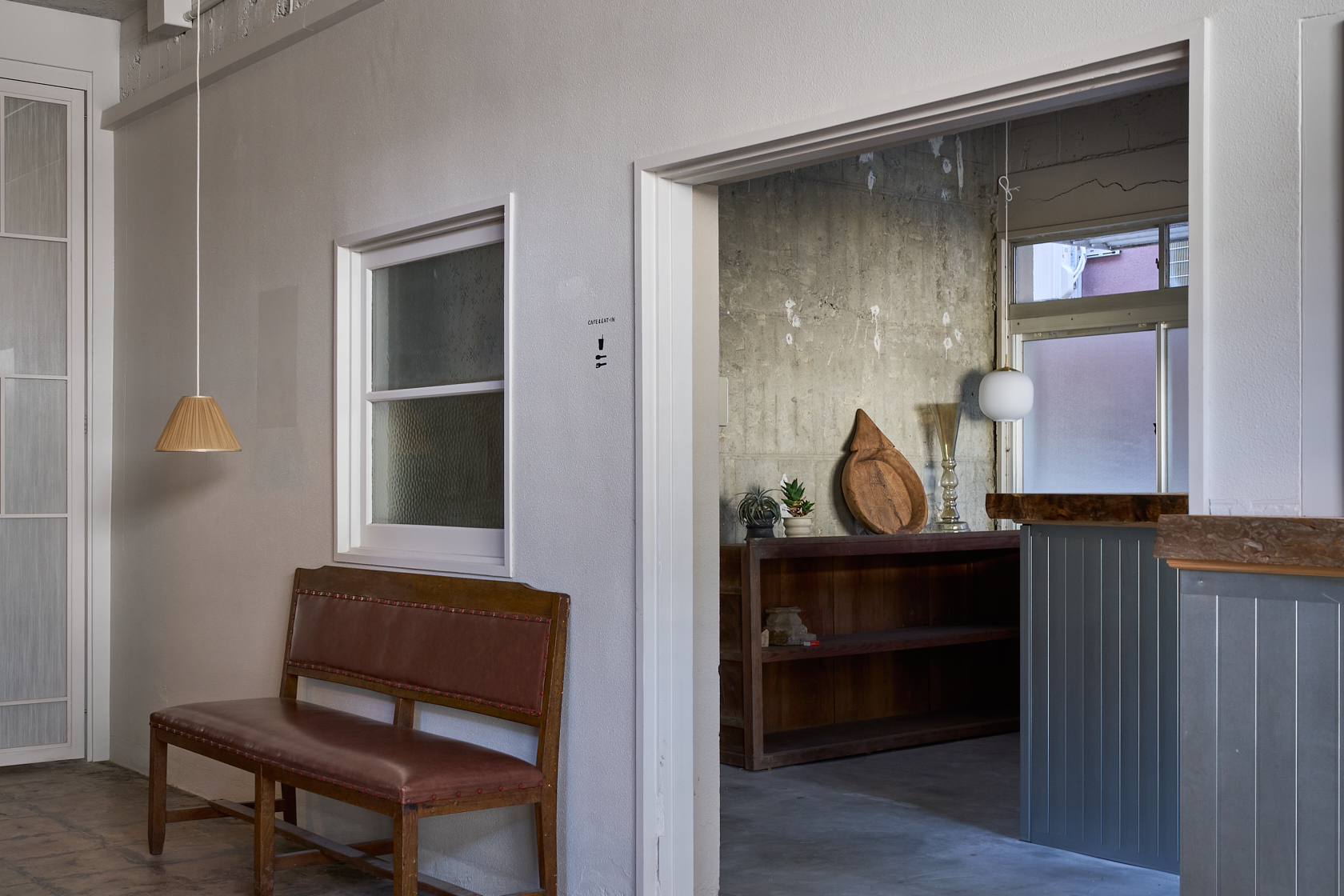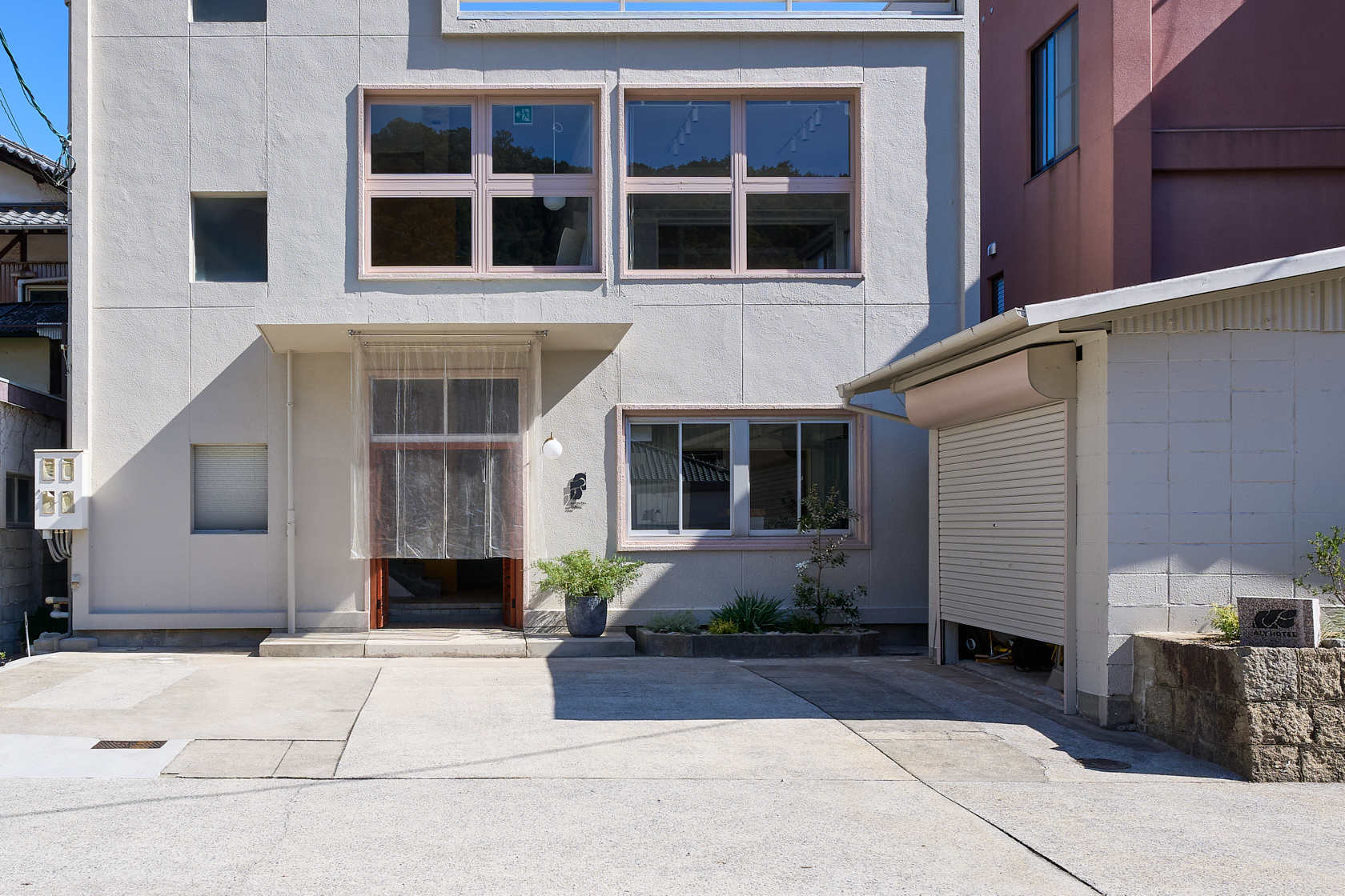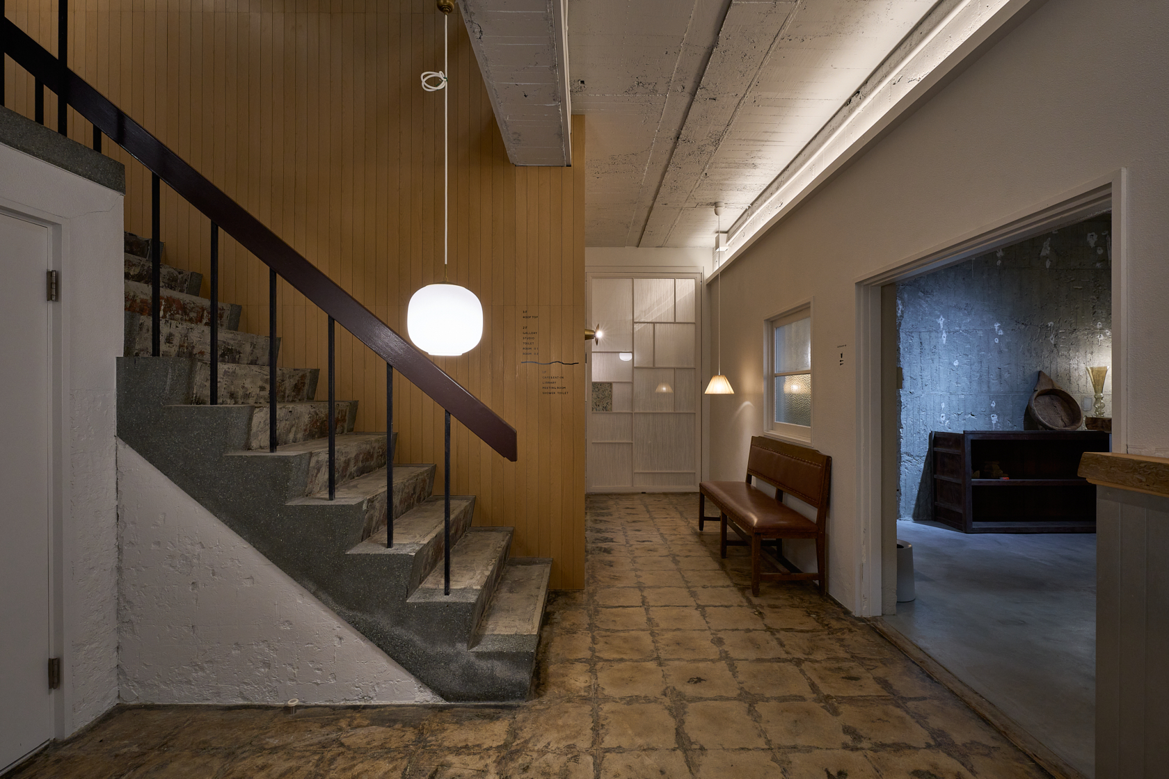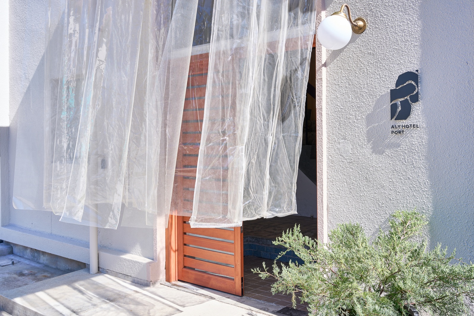 ALY HOTEL全体の「受付」と「発信拠点」として港の近くに位置し、宿泊、カフェ、ギャラリー、オフィス機能を併せ持ちます。かつて地域のクリニックとして親しまれていた建物を再生しました。1階にはラウンジスペースを、2階やエントランスホールにはカフェ兼ギャラリーを配置しています。