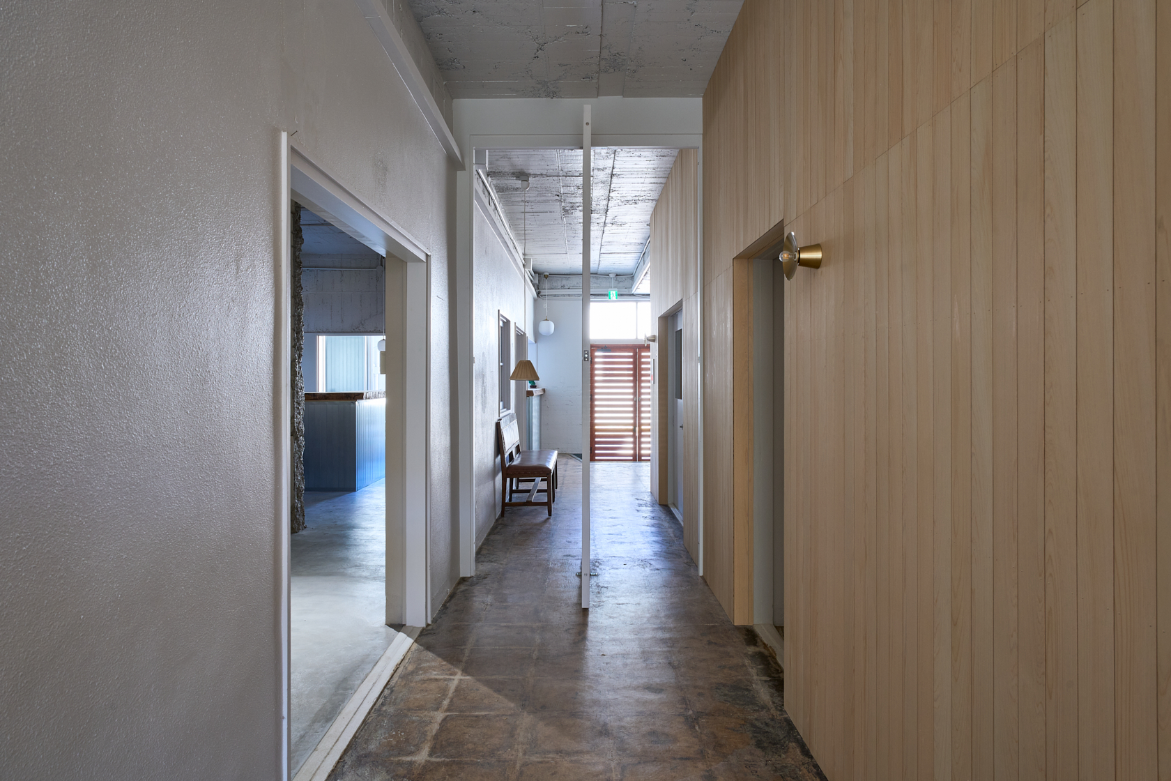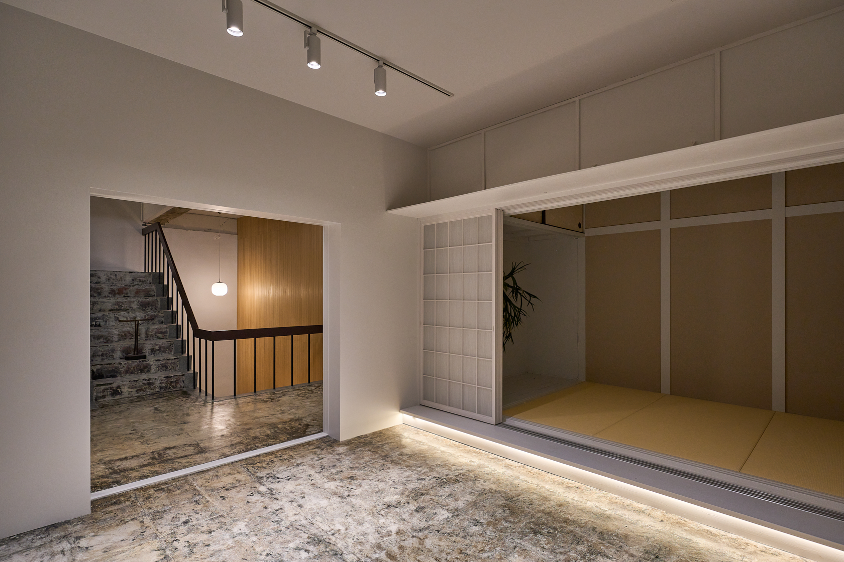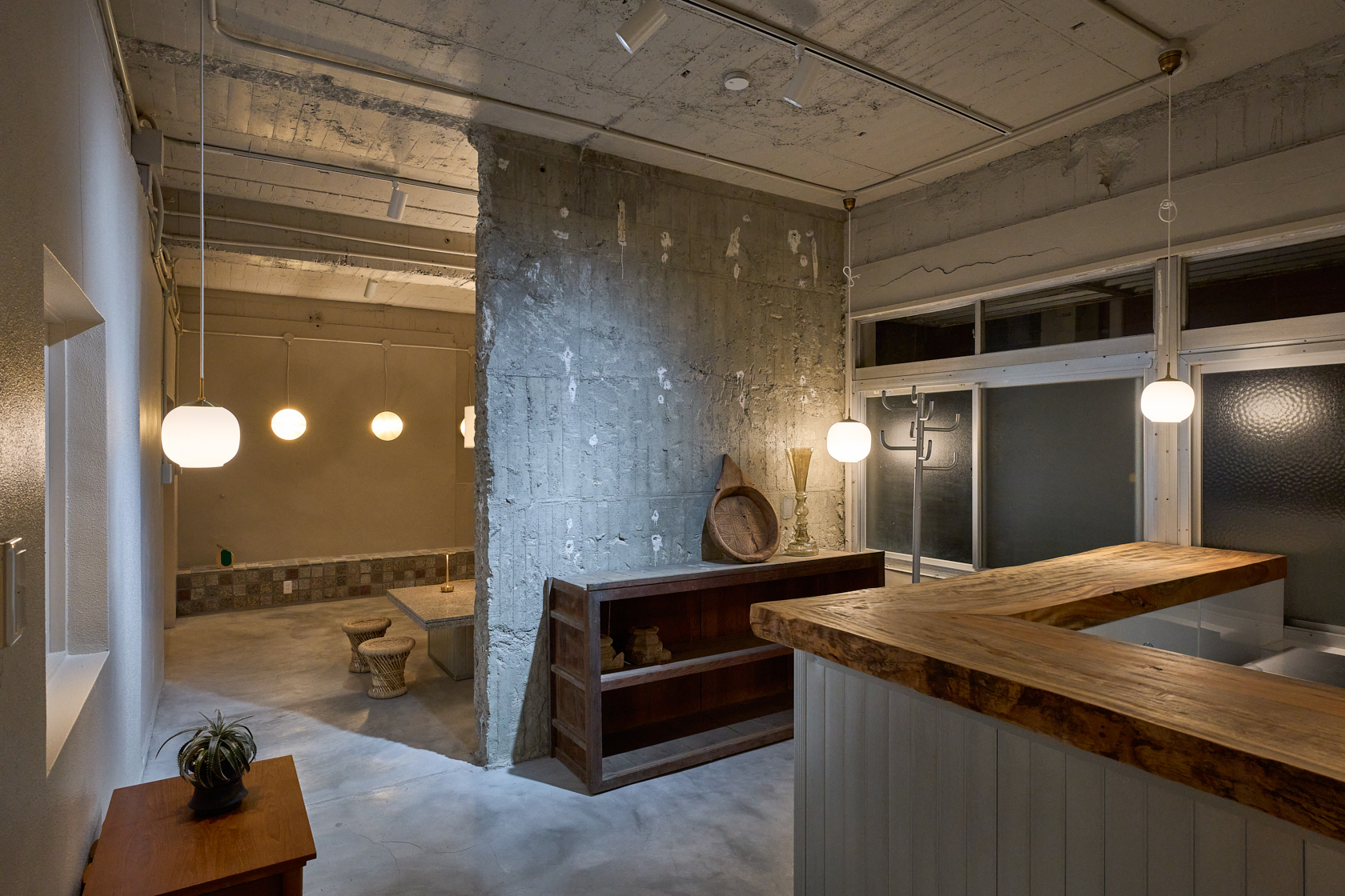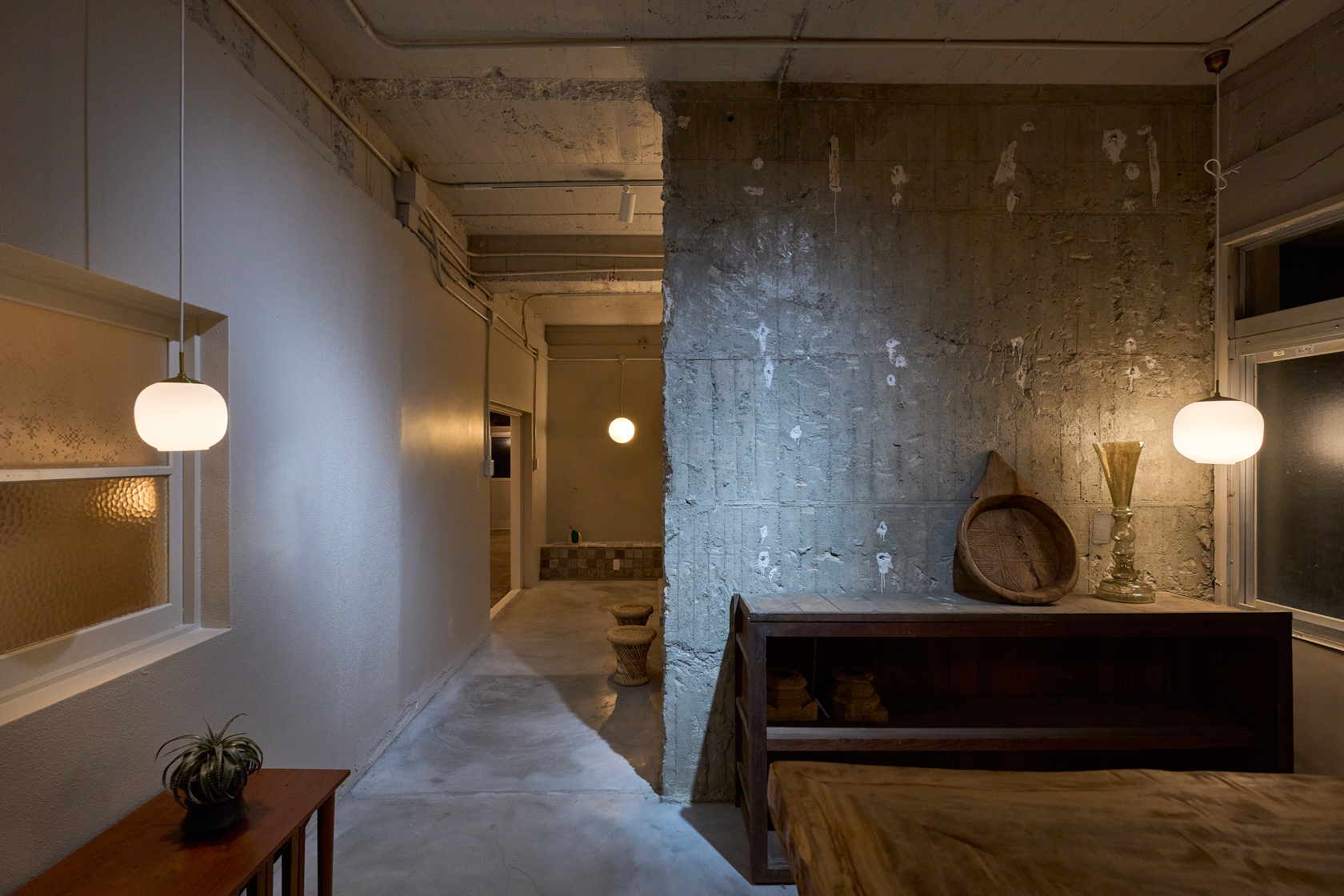 ALY HOTEL全体の「受付」と「発信拠点」として港の近くに位置し、宿泊、カフェ、ギャラリー、オフィス機能を併せ持ちます。かつて地域のクリニックとして親しまれていた建物を再生しました。1階にはラウンジスペースを、2階やエントランスホールにはカフェ兼ギャラリーを配置しています。