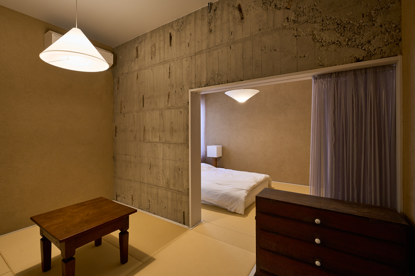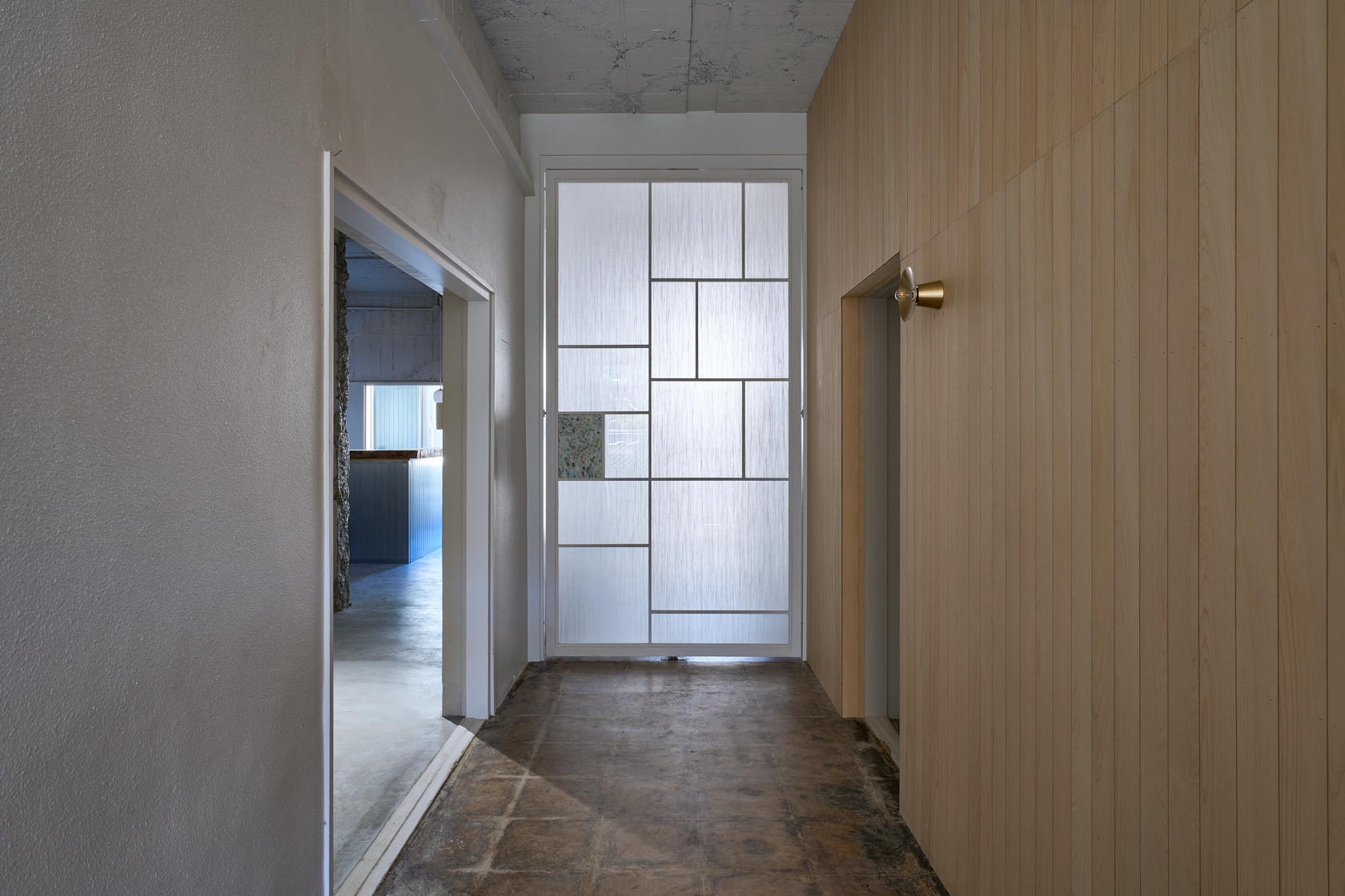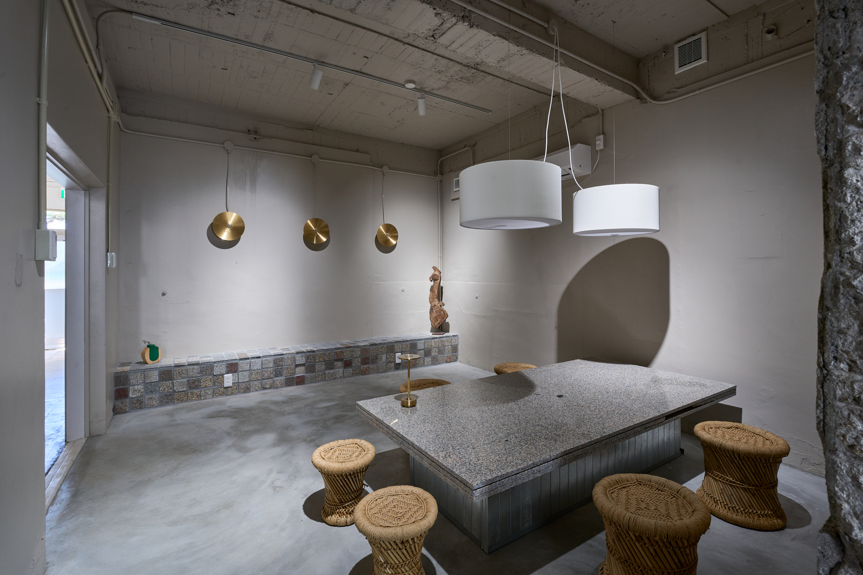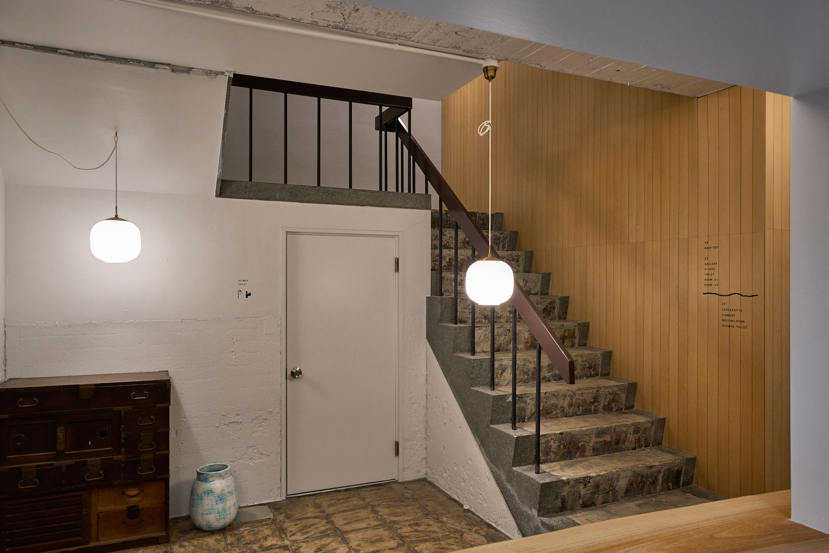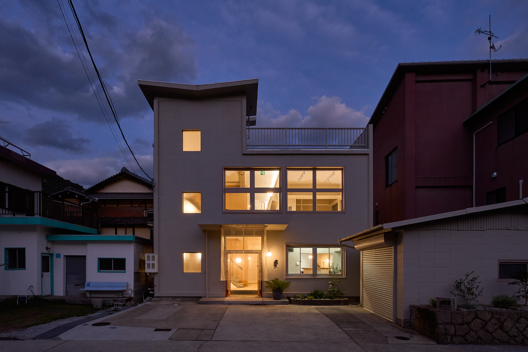 ALY HOTEL全体の「受付」と「発信拠点」として港の近くに位置し、宿泊、カフェ、ギャラリー、オフィス機能を併せ持ちます。かつて地域のクリニックとして親しまれていた建物を再生しました。1階にはラウンジスペースを、2階やエントランスホールにはカフェ兼ギャラリーを配置しています。