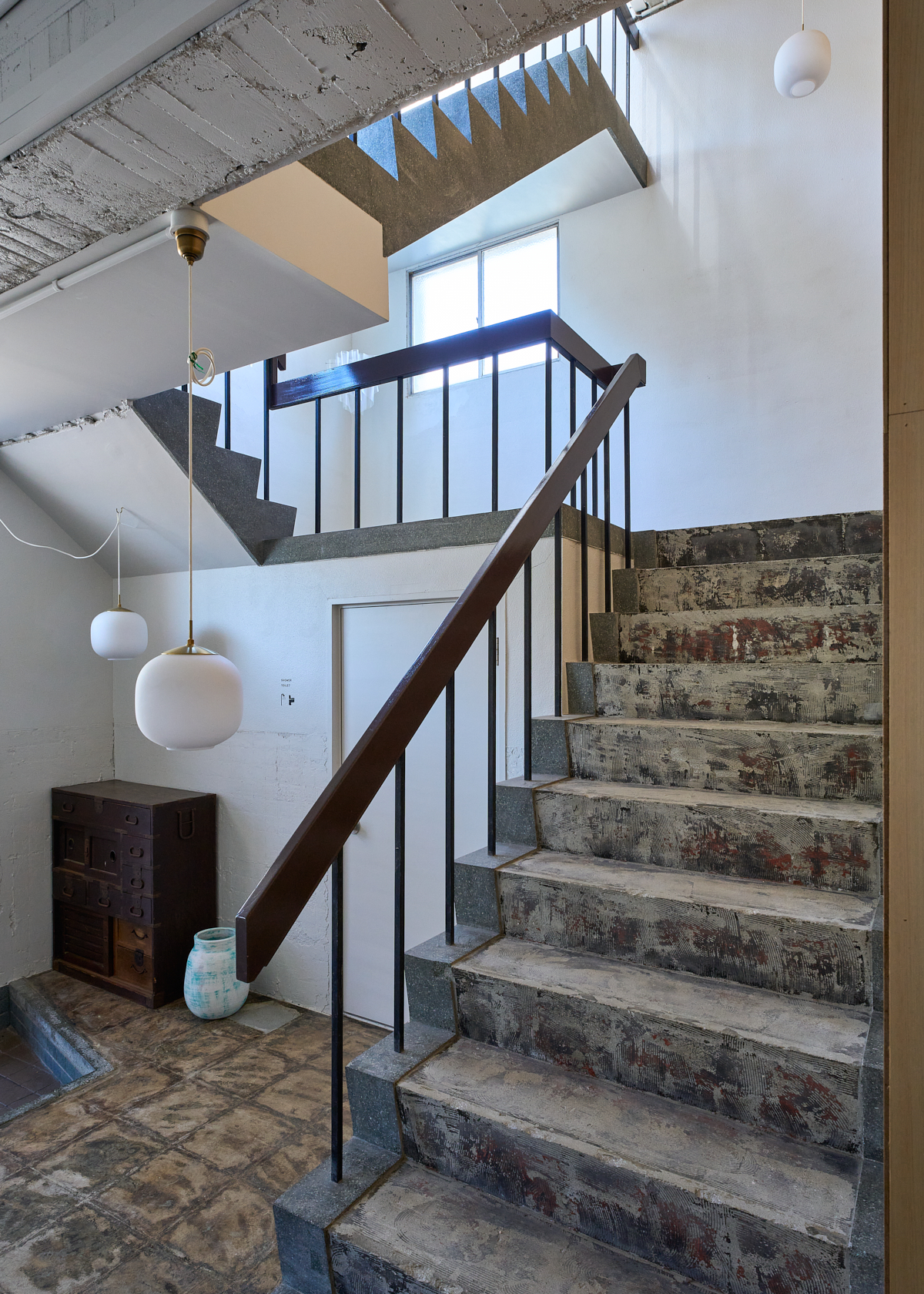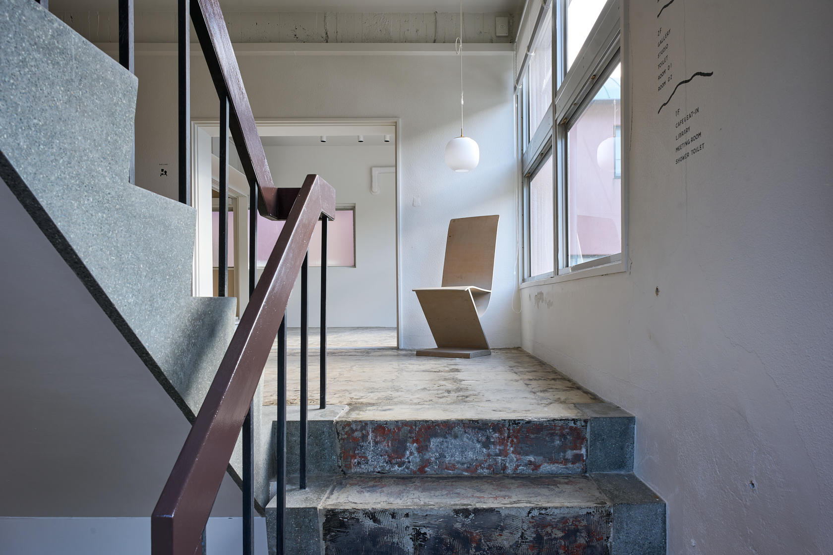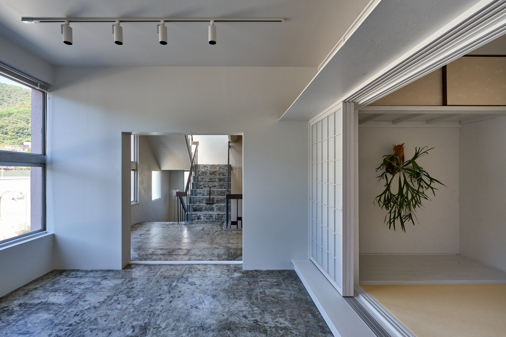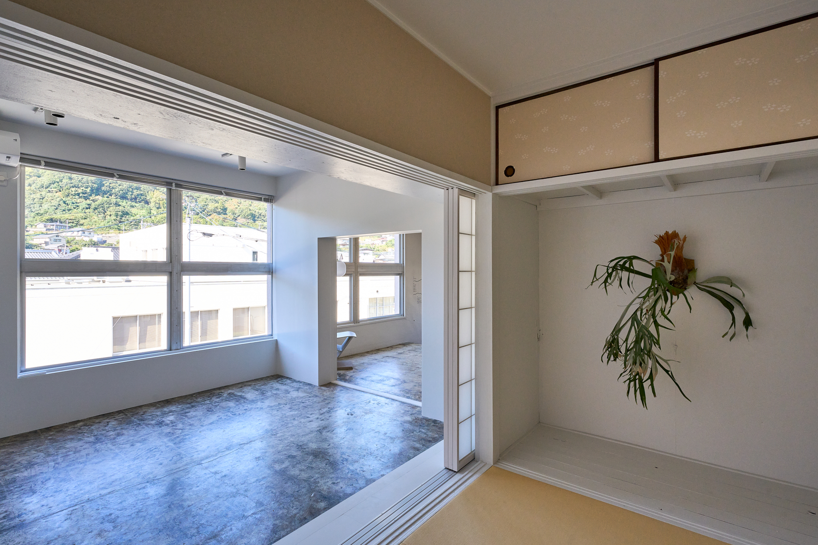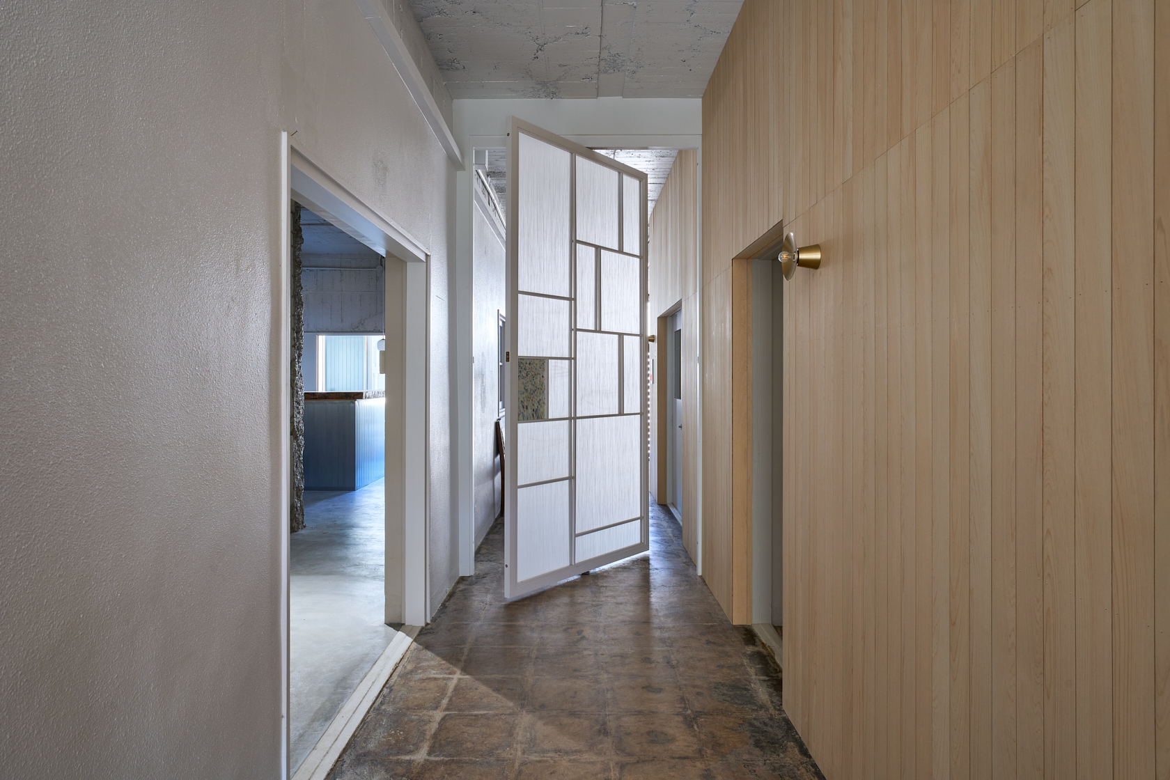 ALY HOTEL全体の「受付」と「発信拠点」として港の近くに位置し、宿泊、カフェ、ギャラリー、オフィス機能を併せ持ちます。かつて地域のクリニックとして親しまれていた建物を再生しました。1階にはラウンジスペースを、2階やエントランスホールにはカフェ兼ギャラリーを配置しています。