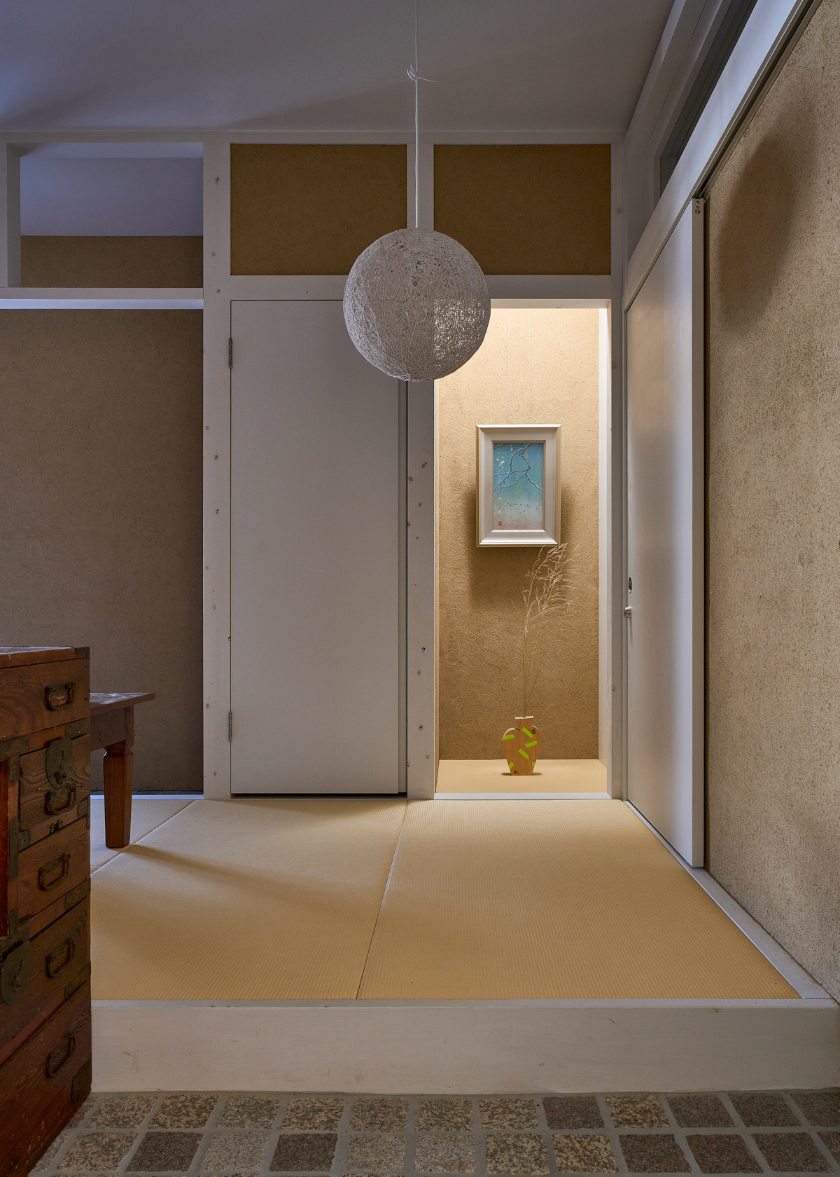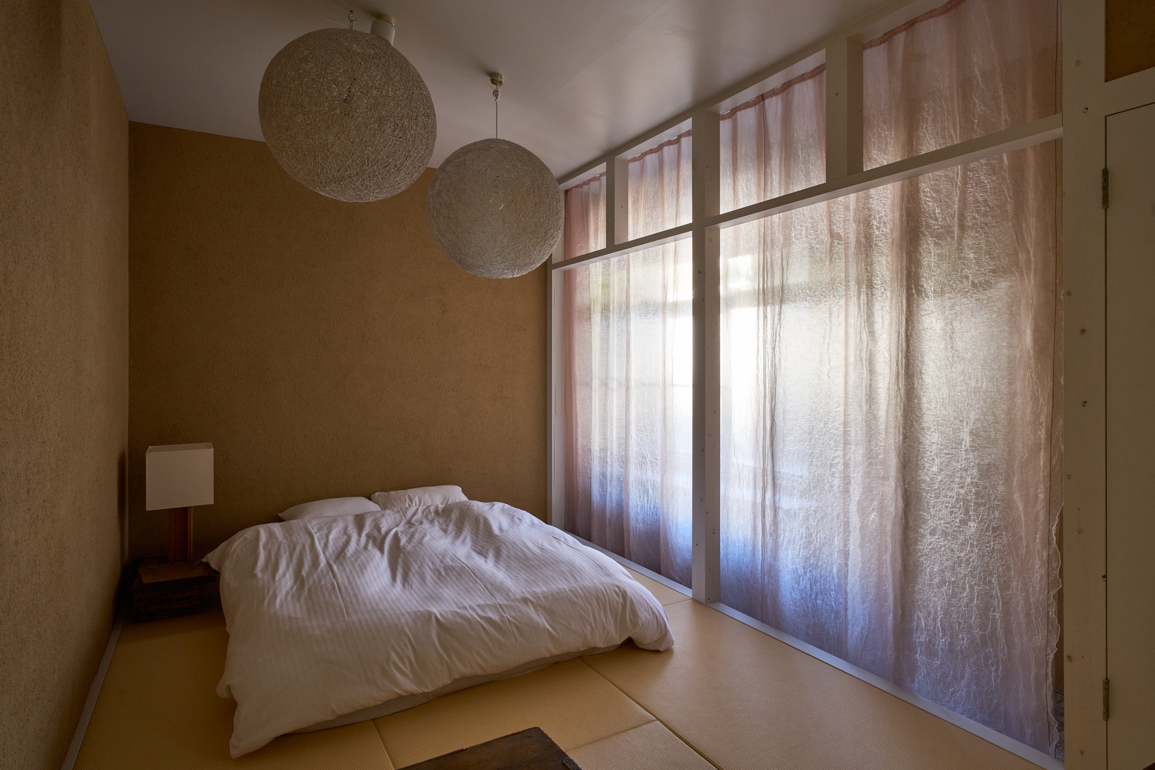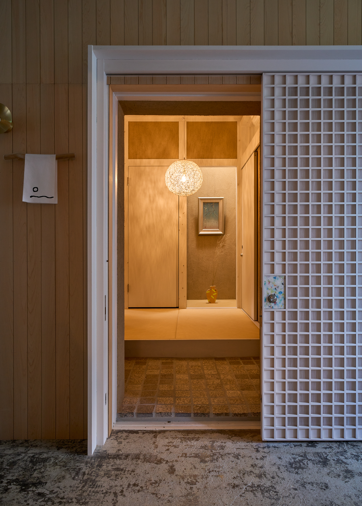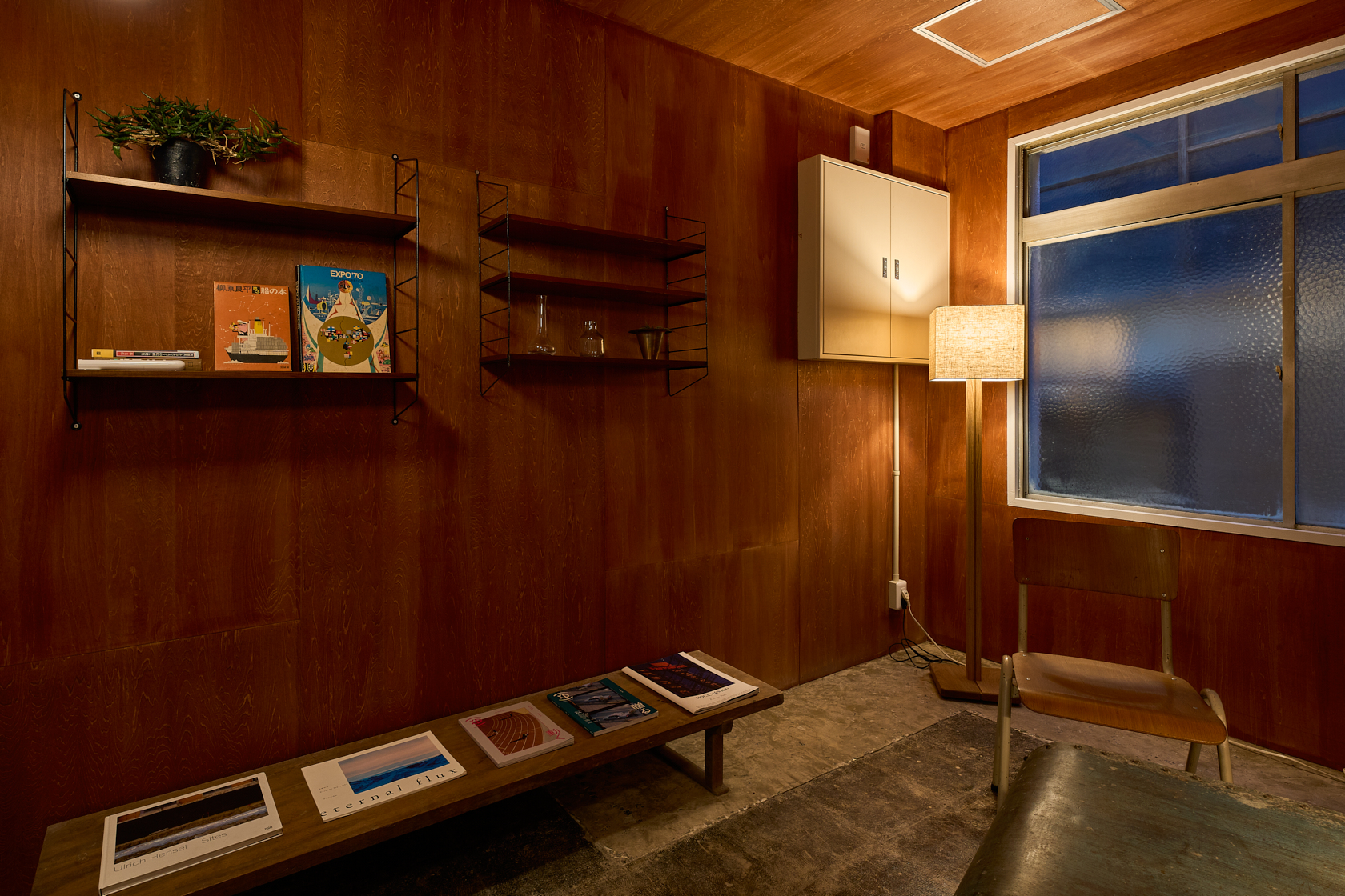 ラウンジでは、滞在者や地域住民が自由に集い、語らい、建築家やアーティストたちがALY HOTELの思想や取り組みを共有できる場を目指しています。プロジェクト全体の思想を伝える「発信拠点」として機能することで倉橋の街の情報を発信するだけでなく、空き家再生を通じて「建築家がどのように地域と関わり、未来を描くのか」を訪れる人々にラウンジで感じてもらえる空間をつくっています。