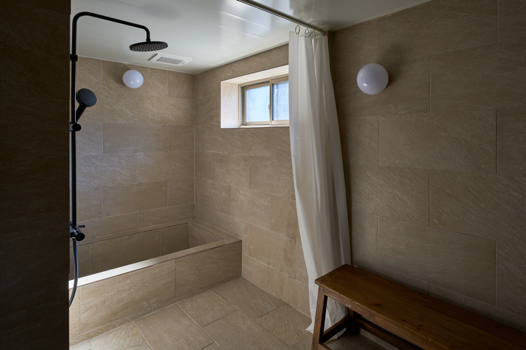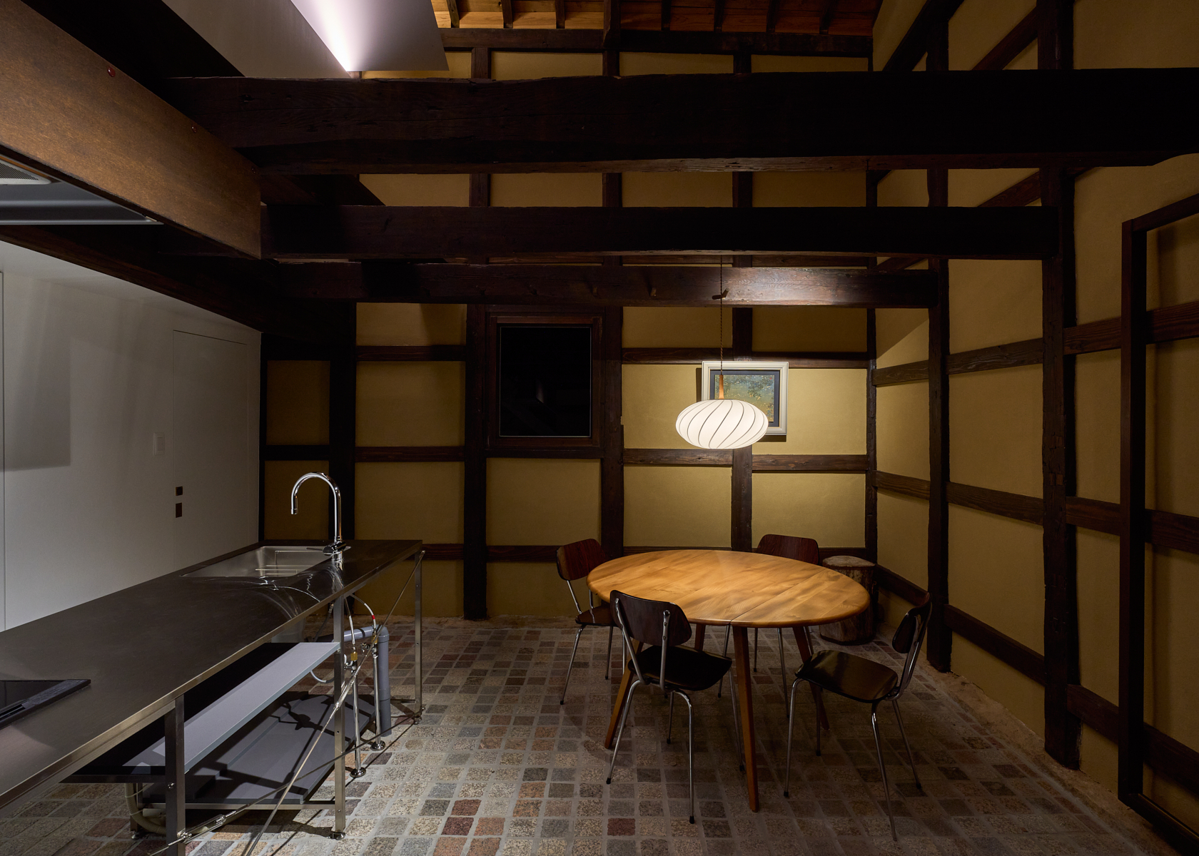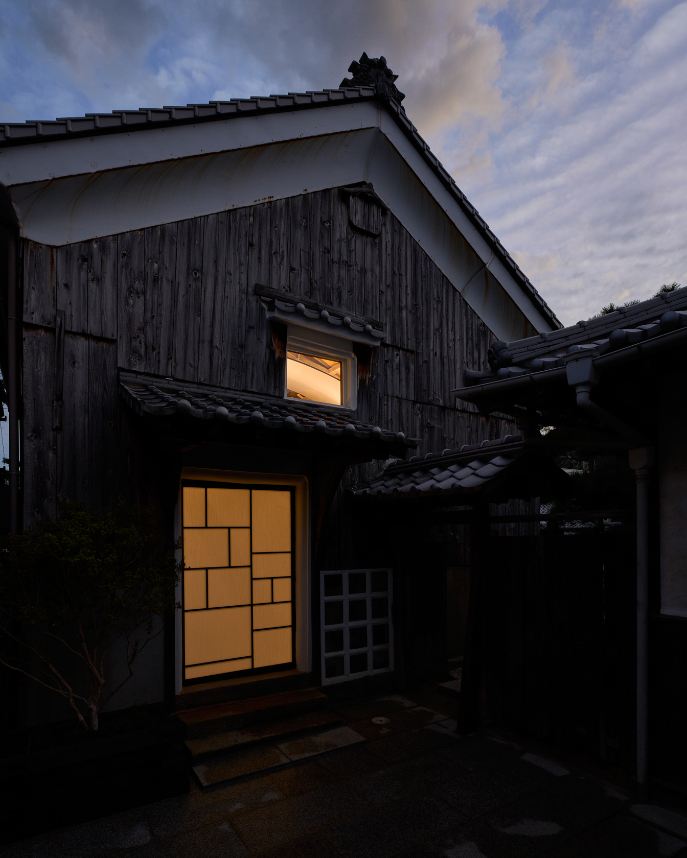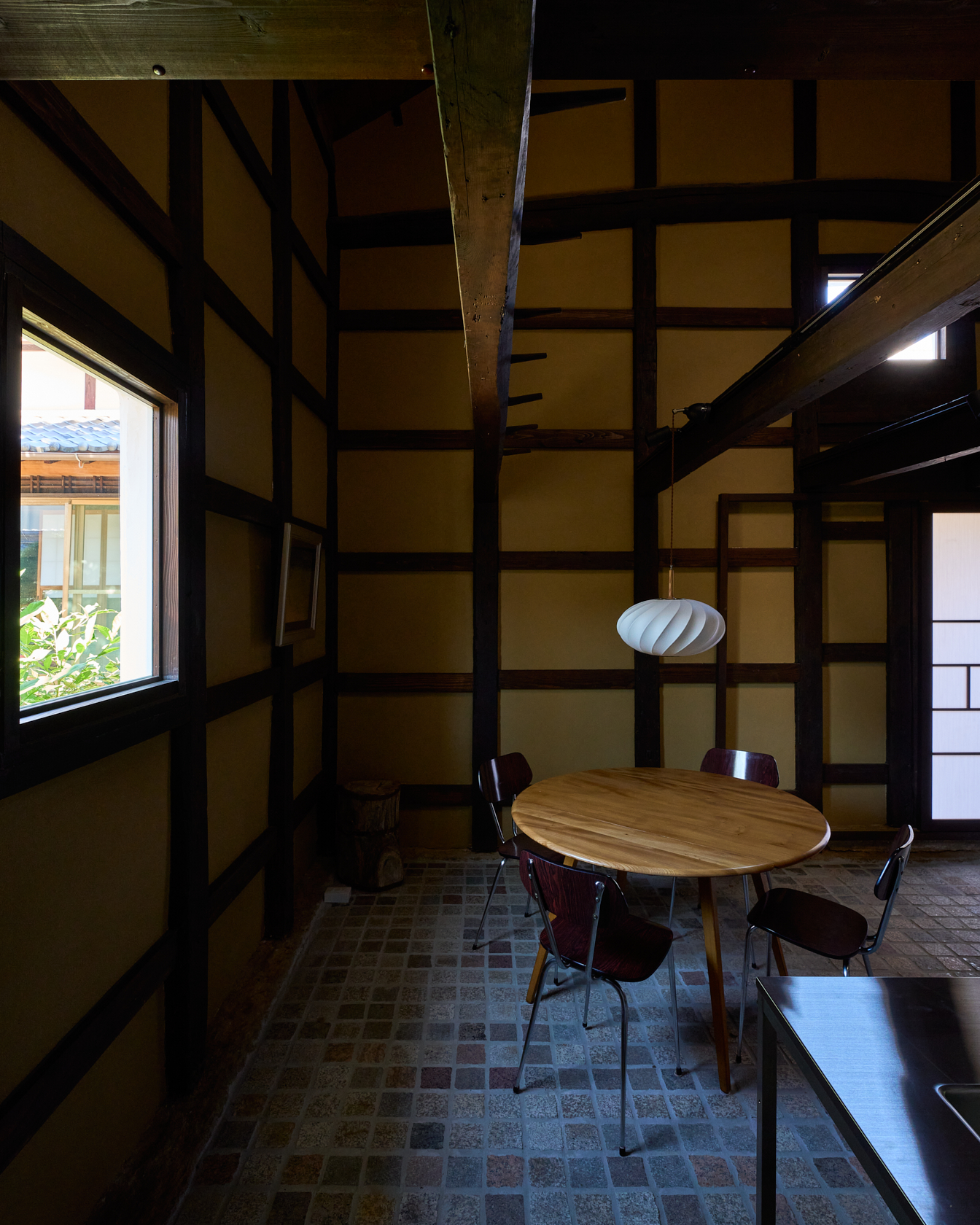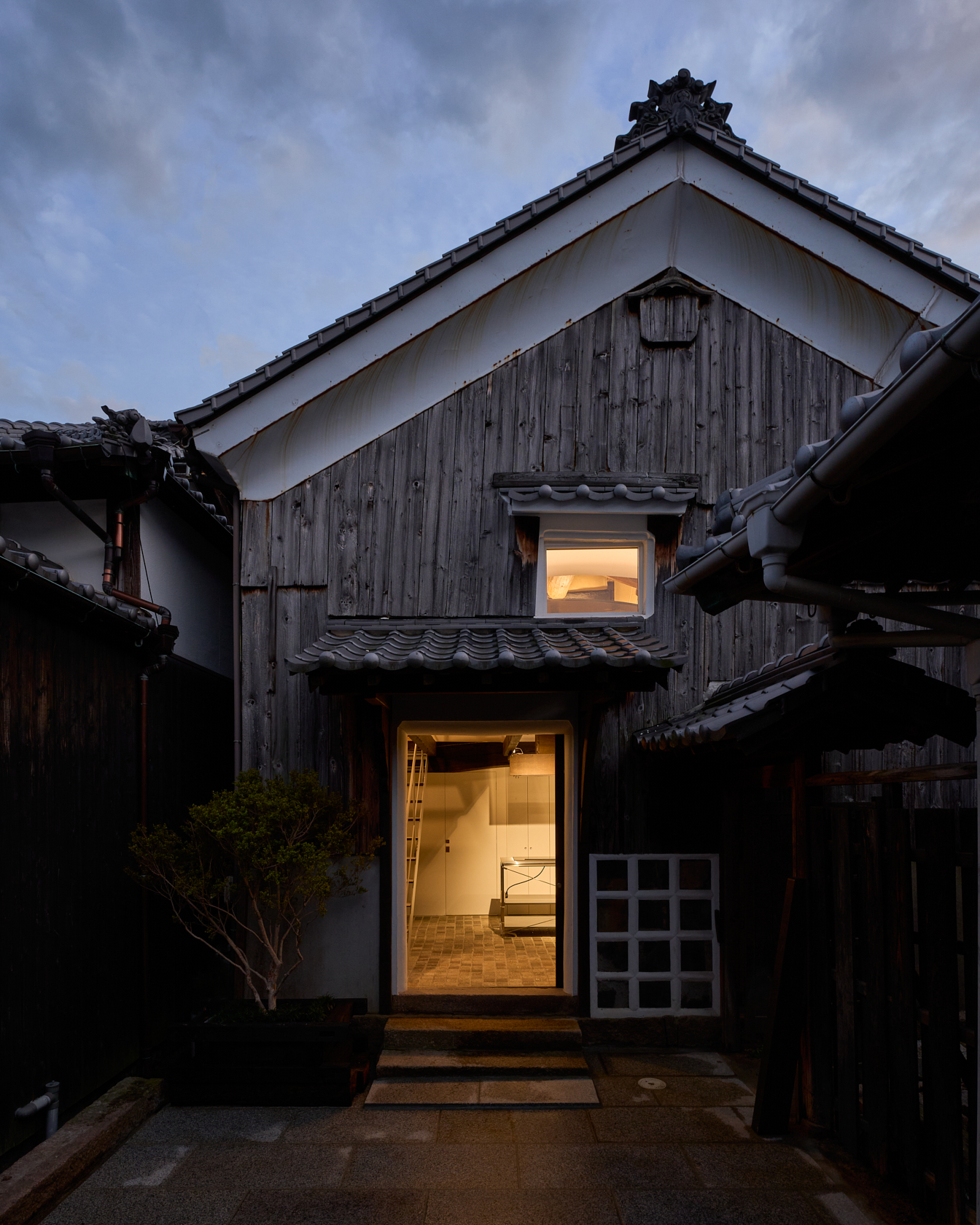 静寂の中で本を読んだり、仕事に没頭したり、小説家やアーティスト、そしてゆったりとした時間を求める人々が心静かに過ごせる創造的な場所を目指しています。ここでは古民家の価値を尊重しつつ、現代のデザインやアートを融合させた保存と再生の融合をテーマに再構築。建材には、東京国会議事堂の外壁にも使用された倉橋の桜御影石を採用し、庭や蔵の石畳などに地元石を再利用しました。さらに蔵内部では反射するアルミ屋根と照明によって、古民家の闇と光が対話する空間を創出しています。