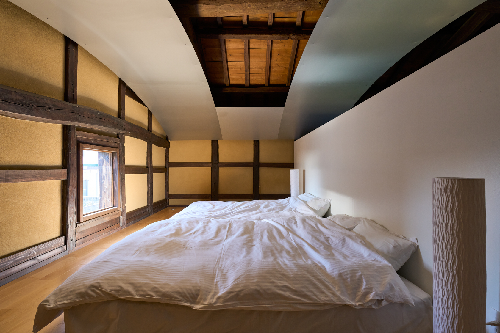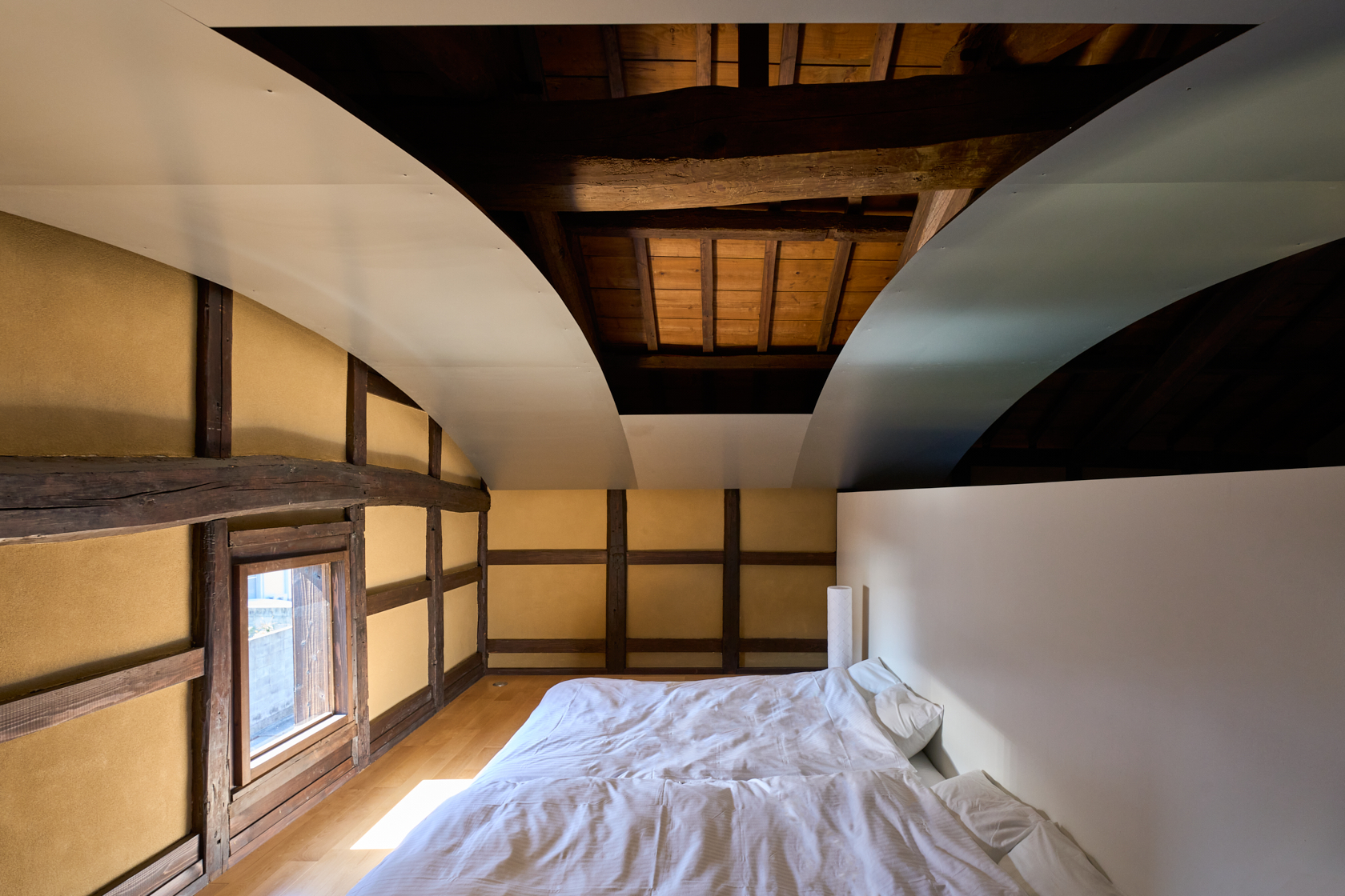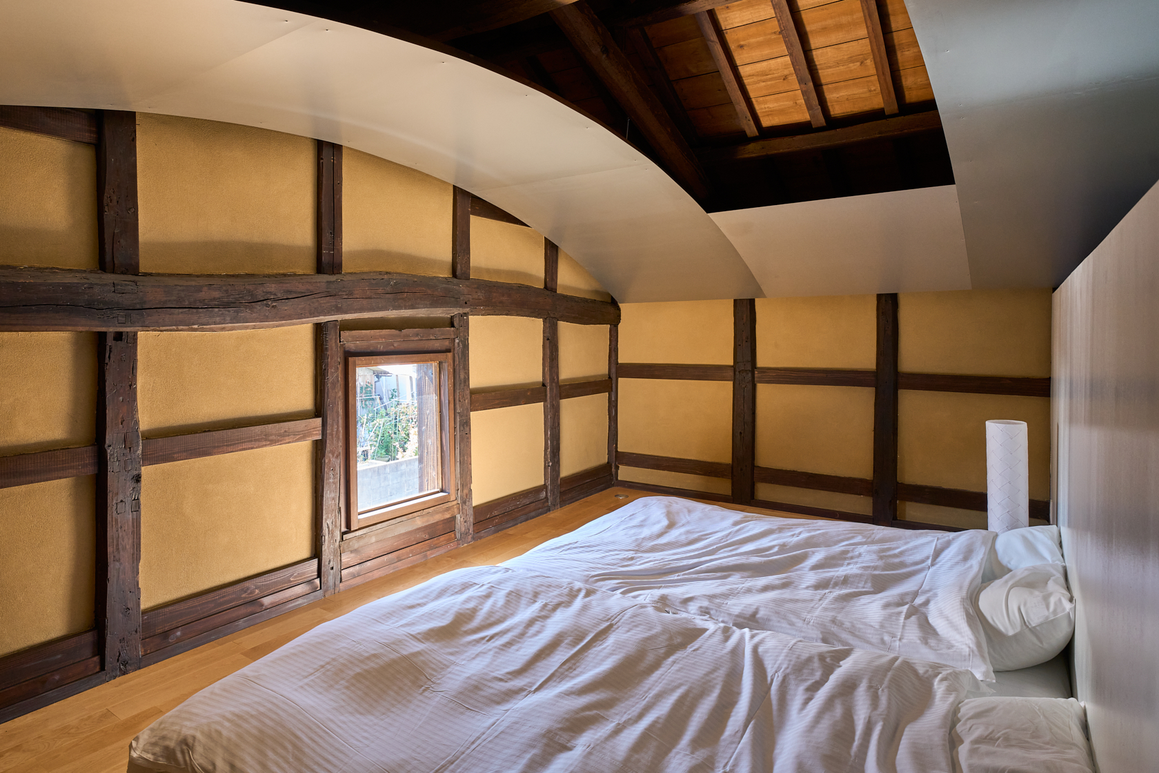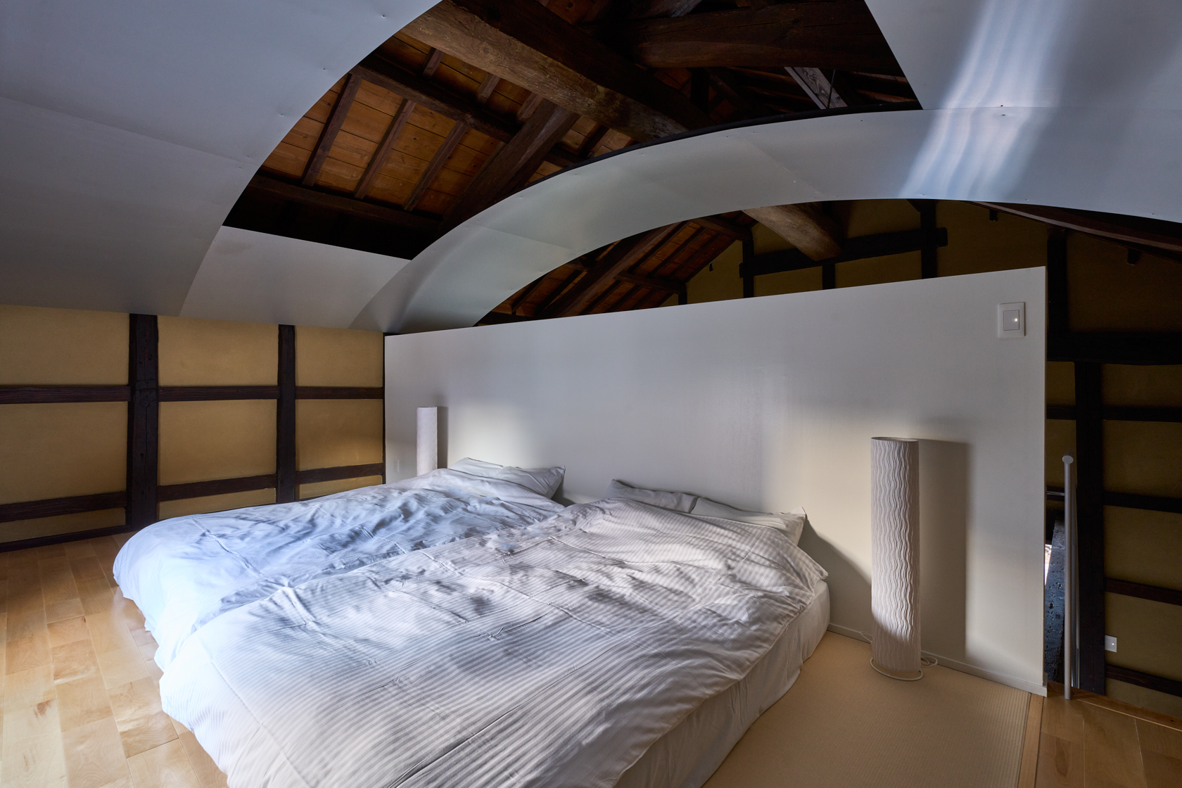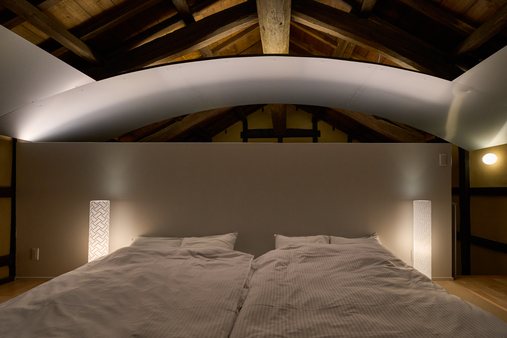 江戸時代、広島藩士たちが景観を求めて集ったとされる「六湾楼(ろくわんろう)」を再生しています。このROKUには、母屋としての六湾楼と、その横に佇む「蔵」があります。私たちはこの蔵に新たな可能性を見出し、かつて蔵だった場所を宿泊施設として蘇らせるという新しい挑戦を行いました。築100年を超える建物として歴史ある躯体を可能な限り残しながら、その構造の美しさを“見せる建築”として再生。