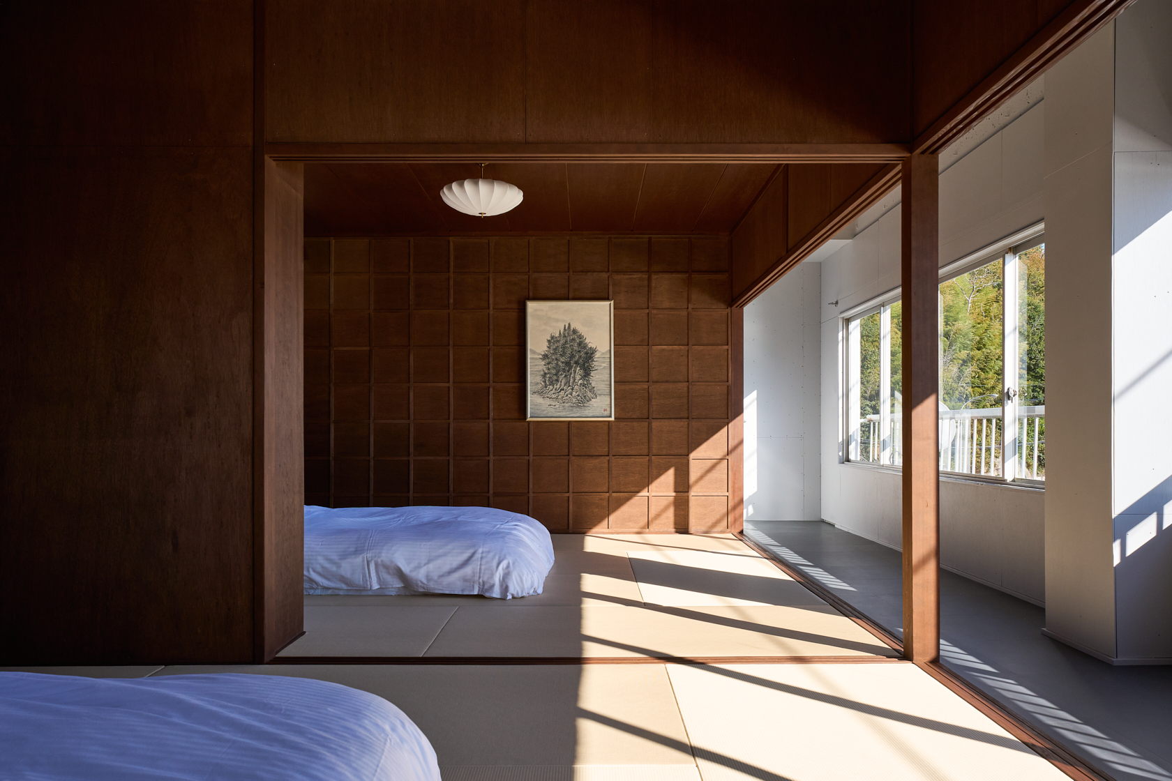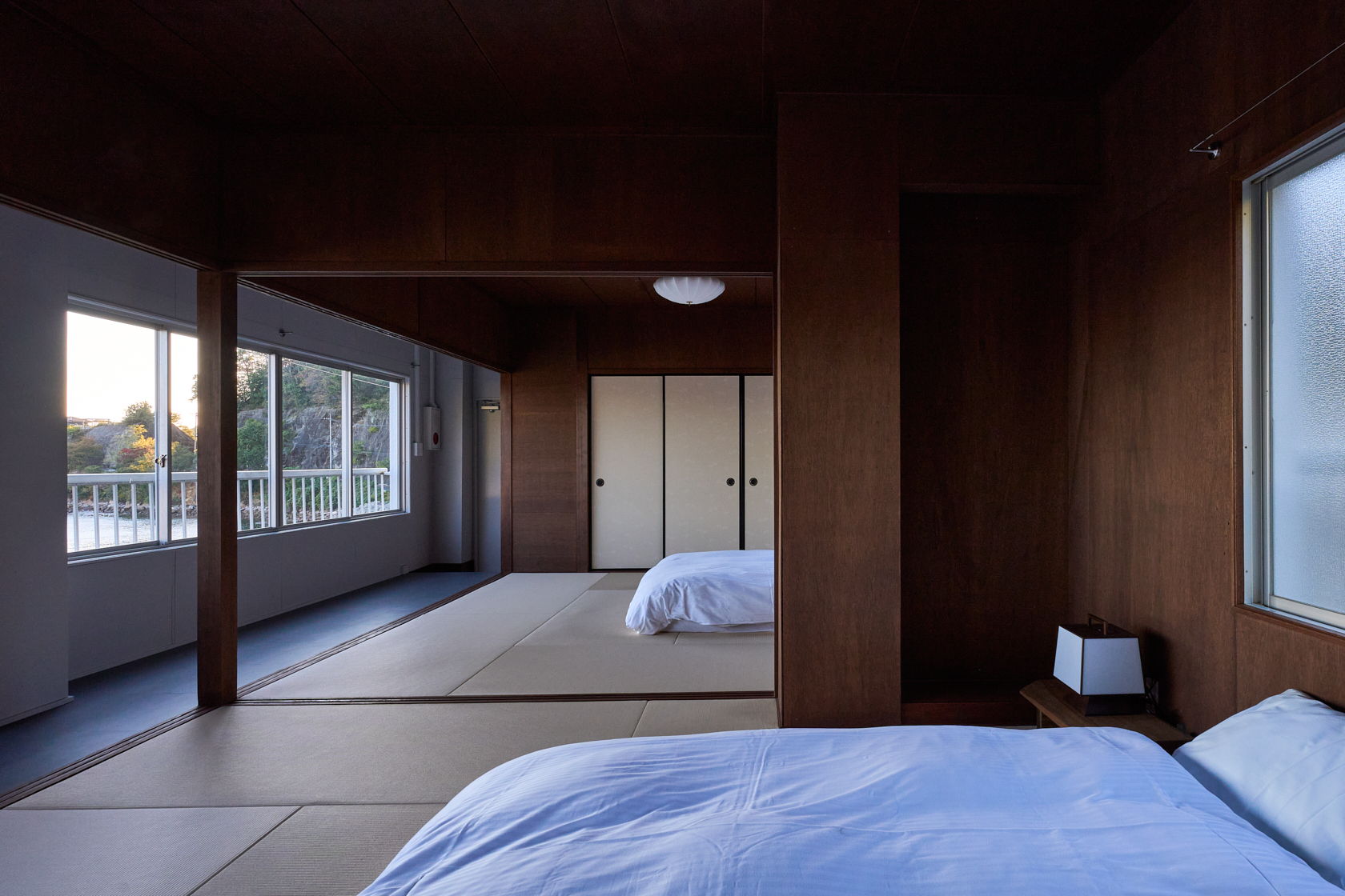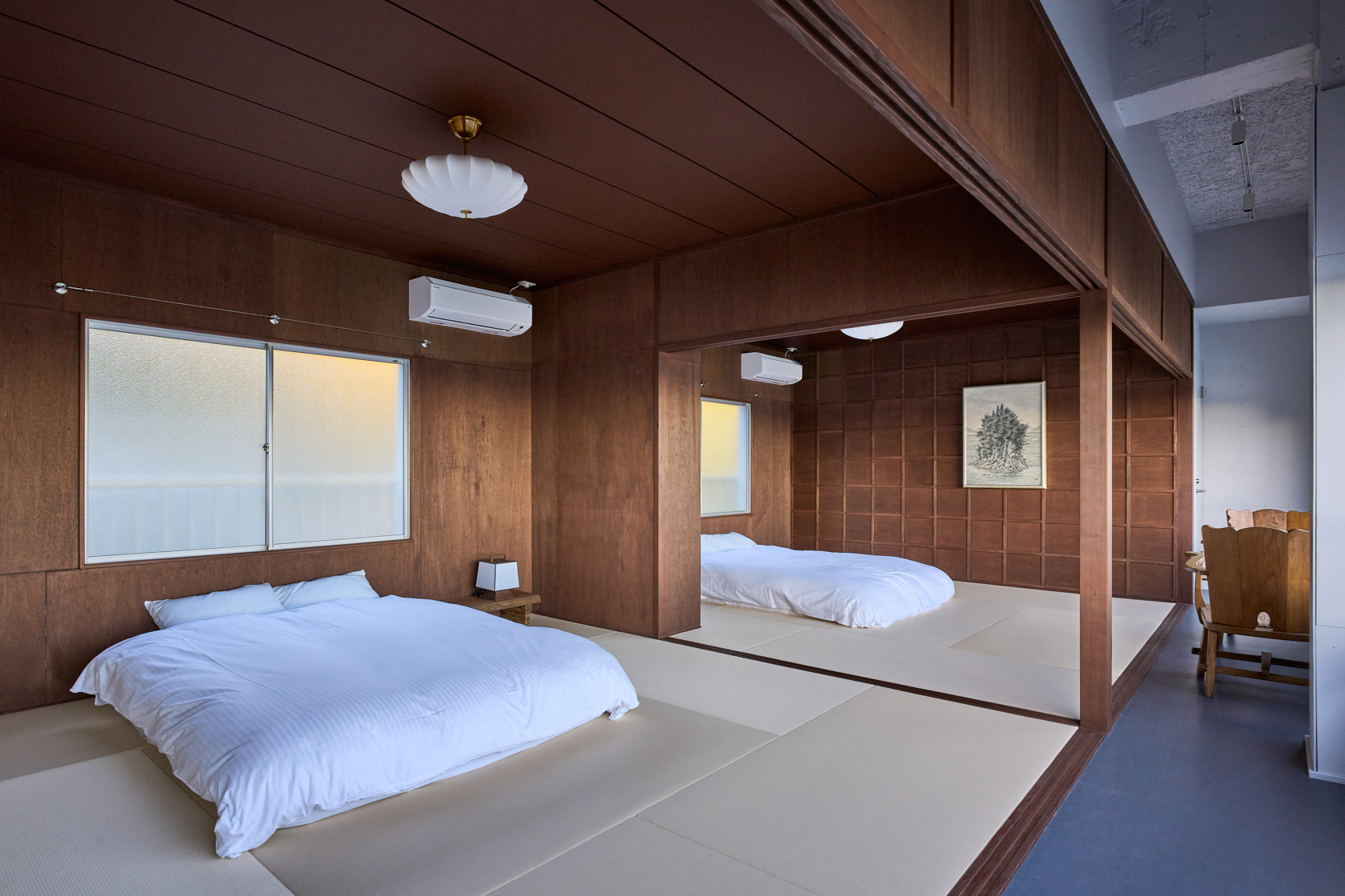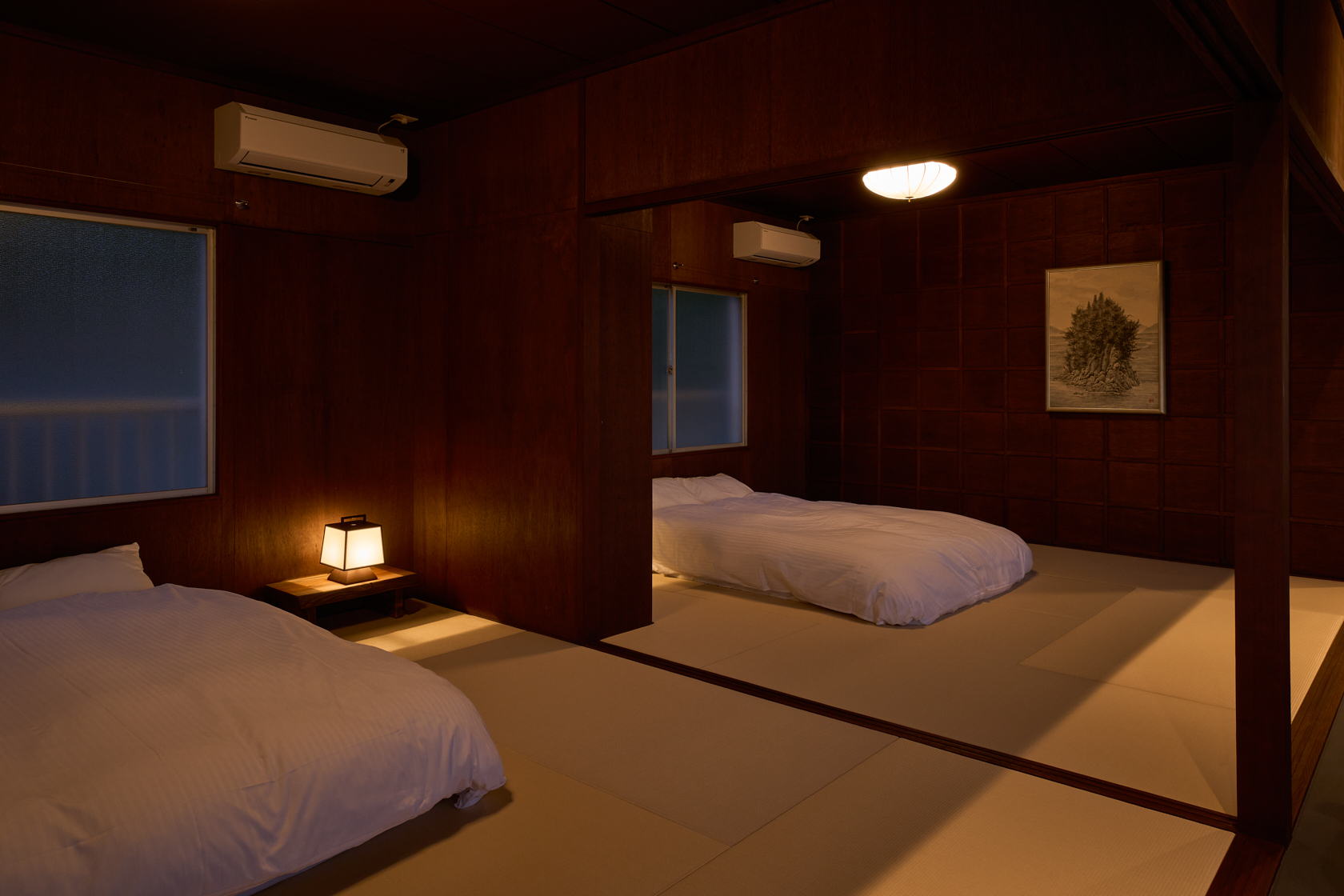 木造の軽やかさと温もりを生かし、ALY HOTELの共通テーマである「アートスペースとしての宿」を体現しています。建物の窓際からは瀬戸内の海を一望でき、ゆったりとした時間の中で夕陽を眺めながら過ごせる、特別な場所です。室内にはアートや工芸の要素を織り込み、実際の風景と作家の描く風景、両方の“倉橋の景色”を楽しめる空間となっています。